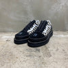 つま先部分にはミリタリーのドレスシューズやボウリングシューズ等で見受けられる様に、靴のサイズをステンシルで1つ1つ吹き付けています。ANEXのVANSフリークの方達のネクストステップとして提案します。ビジネスやドレスアップした際にも履いていけるVANSをイメージしました。靴紐はラバーコーティングされた物に変更しました。靴箱はリクチュール式で既存のVANSのBOXを裏返して、リクチュールのテープを貼りつけています。完全1点モノです。